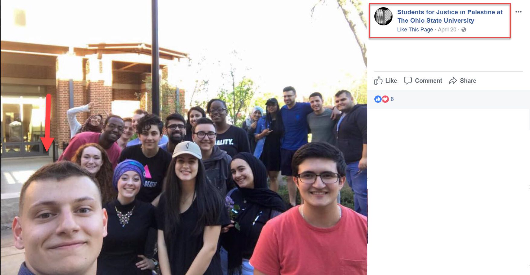 On April 4, 2016, SJP OSU shared to Facebook a quote from an article published anonymously a month earlier in the Tufts University student newspaper, that demonized Birthright-Israel.