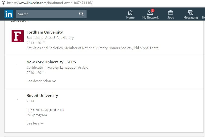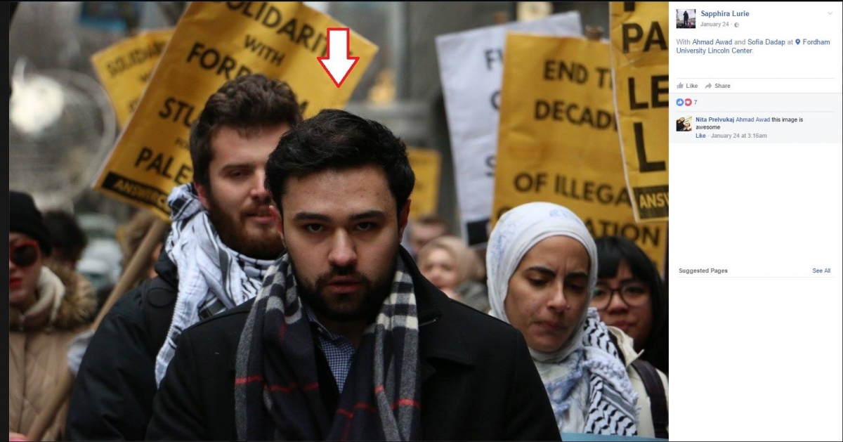 On April 26, 2017, The New York Post reported that Awad and fellow Fordham students are taking legal action against the university for banning their SJP chapter.