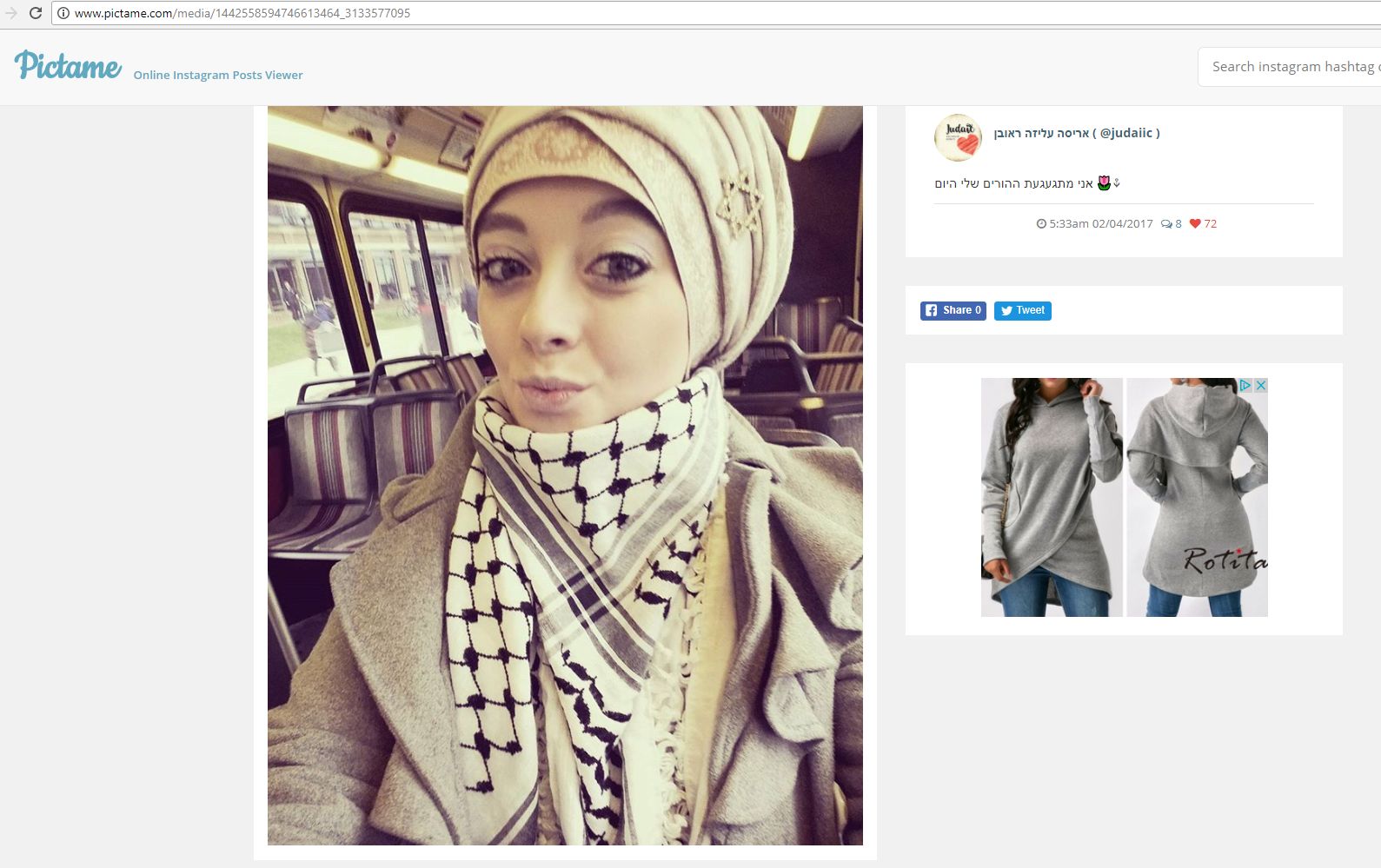 Ruebensaal-Novak goes by the moniker אריסה עליזה ראובן [Arisa Aliza Reuven] on social media.
