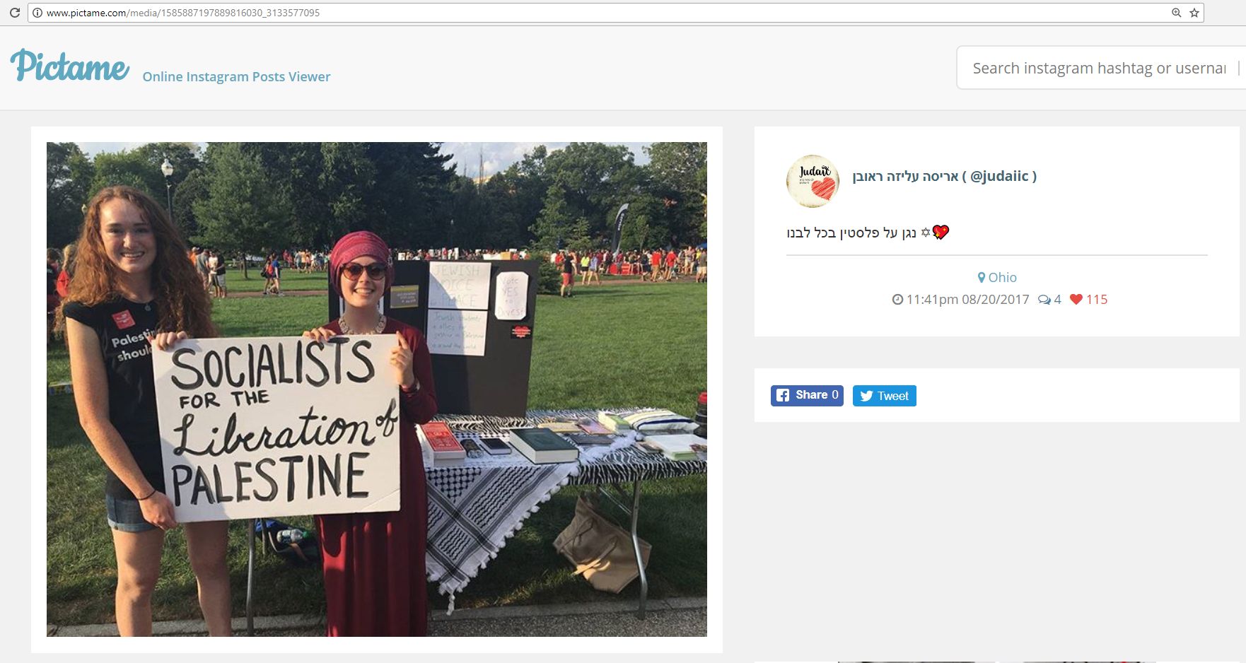 On November 6, 2015, OSU SJP posted an article on Facebook that accused Israel of harvesting organs of Palestinians.