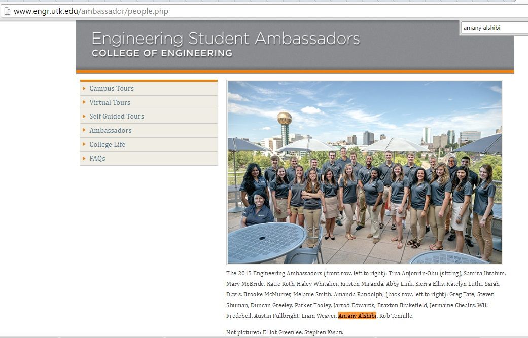 Alshibi is a student at UTK majoring in Chemical and Biomolecular Engineering and was a 2015 Engineering Student Ambassador.