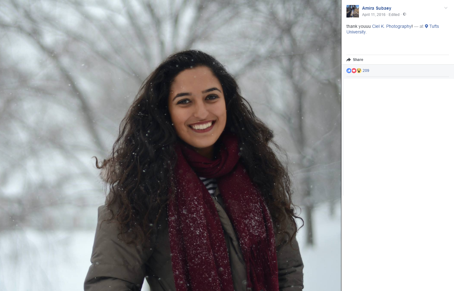 According to Facebook, Subaey has attended over two dozen Tufts SJP events from 2015 to 2017 including a Tufts SJP “Greater Boston SJP Planning Meeting” on November 15, 2015.