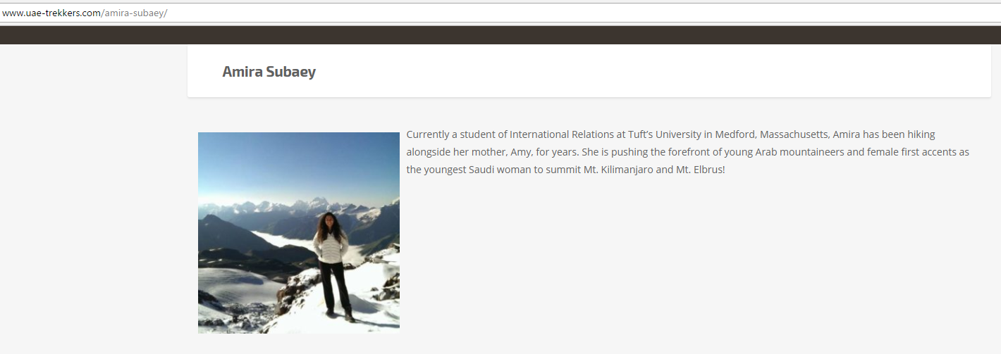As of July 2017, uae-trekkers.com reported that Subaey was majoring in International Relations.