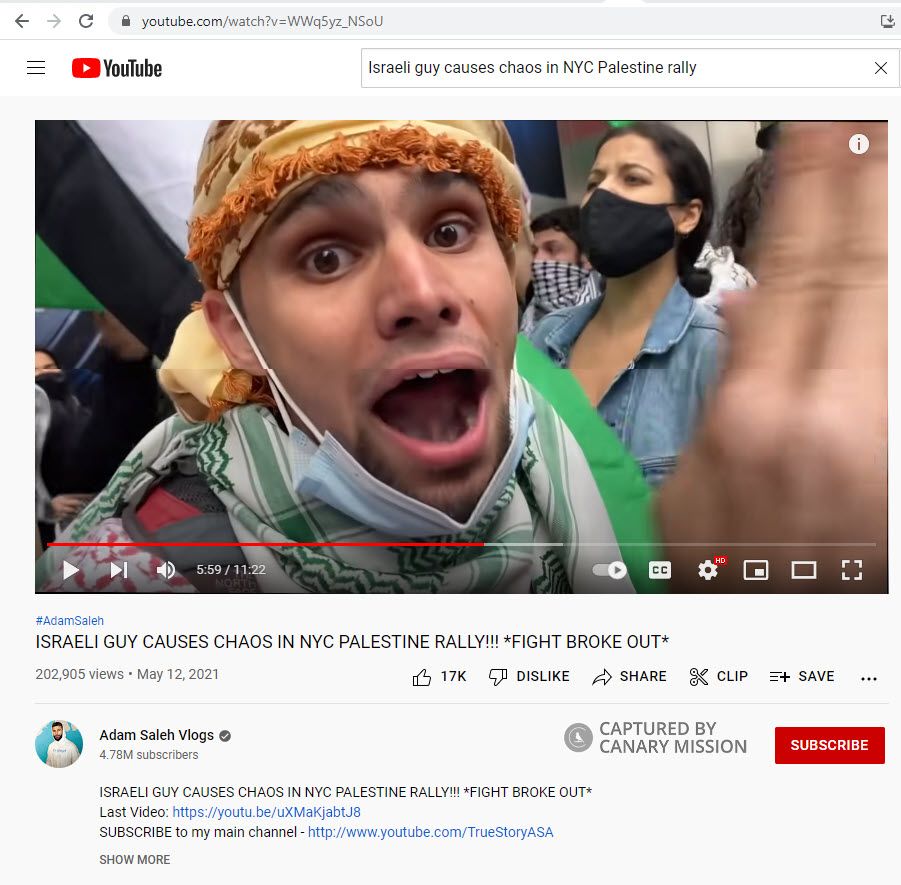 On May 30, 2021, Shuaib said [00:02:50] during a Clash and Mash episode with YouTube personality Adam Saleh: “We need more Arab and Muslim filmmakers, lawyers, people in the NYPD [New York Police Department]. Because how are these Israelis getting away with this s**t? Because they’ve got people in the NYPD. They’ve got people in the media. They have this country. America’s under occupation like Palestine is under occupation!”Shuaib added [00:03:08]: “Now people are gonna say ‘Oh my God! He said the Jews control everything! The Jews! The Jews! Anti-Semitism! Anti-Semitism!’”