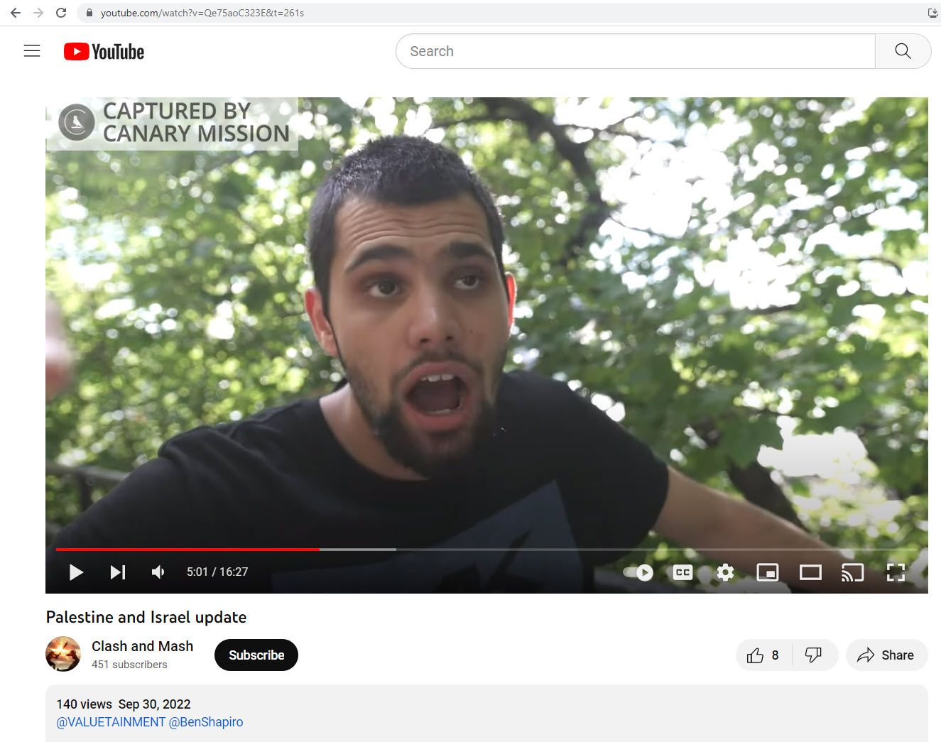 Shuaib said [00:06:00]: “We have to give the Israelis a history lesson because they forgot who Saladin is. Let me tell you who Saladin is. Ya, Benjamin Netanyahu! Ya, Ben Shapiro! You pieces of s**t! Let me tell you who Saladin is.”