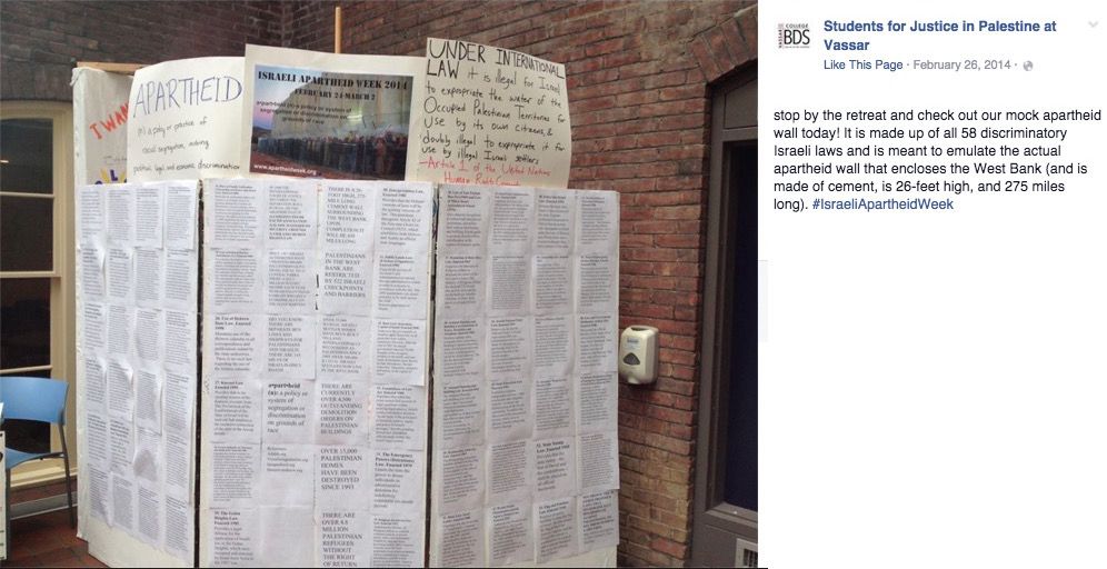 On March 4, 2014, SJP Vassar mocked pro-Israel students on Facebook who felt “attacked” and “vulnerable” after receiving fake eviction notices in their dorm rooms.