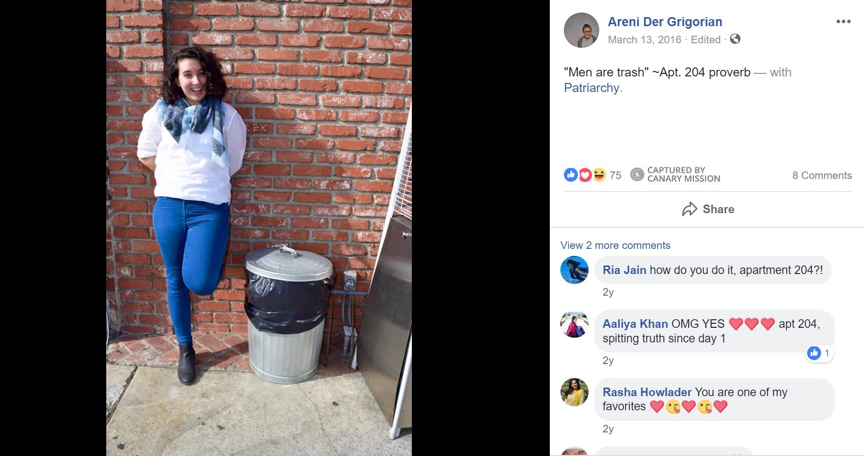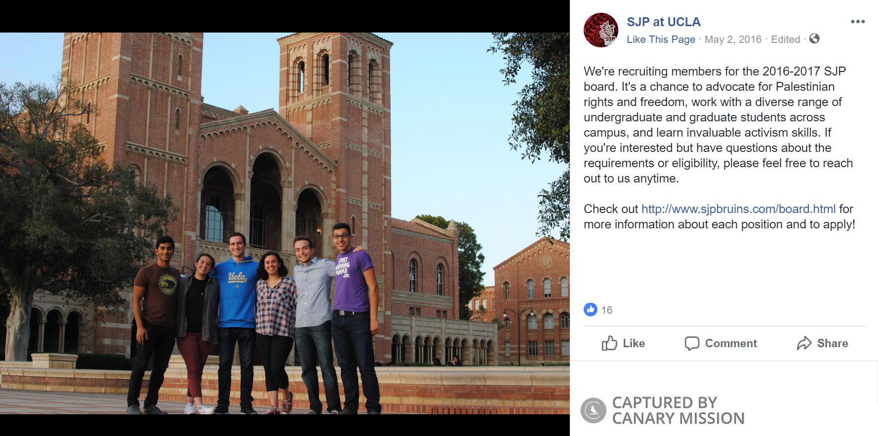 On February 26, 2014, Der Grigorian posted a UCLA SJP Divest poster on Facebook.