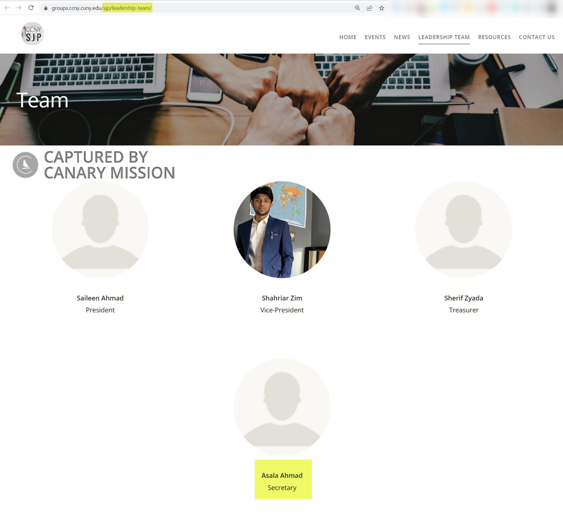 Asala Ahmad [Asalla Ahmad] was listed as the secretary of Students for Justice in Palestine (SJP) at The City College of New York (CCNY) during the 2022-2023 academic year.For more information, see the CCNY SJP Chapter Profile.