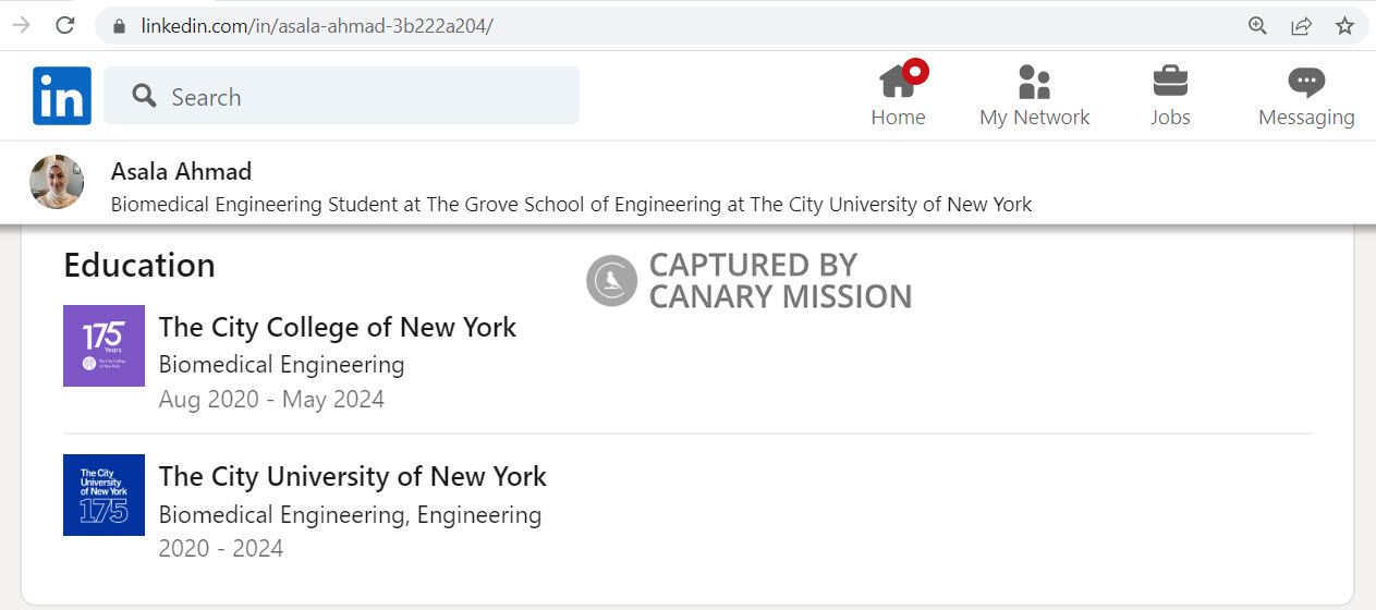 As of May 2023, Ahmad’s LinkedIn page said she was studying Biomedical Engineering at CCNY and was slated to graduate in 2024.