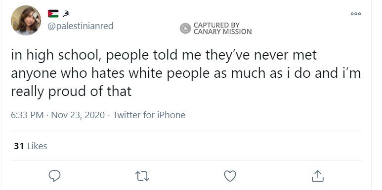 On March 20, 2021,Barakat tweeted about Israelis: “i’d like them to go to hell. Palestinians are forced out of their land & no one bats an eye but we gotta worry about some crusty a** whites who are all complicit in the destruction of our lives? our only country is Palestine, ‘israelis’ need to go back to where they came from.”