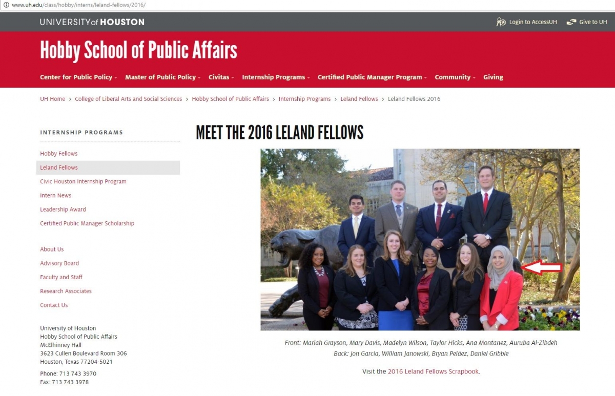 On May 8, 2017, Al-Zibdeh participated in an Israeli Apartheid Week (IAW) event organized by SJP UH.The event featured a mock “apartheid wall,” erected on campus. Text on the wall read: “If you want to find a safe place in Gaza, do not stand beside a child.” Other text read: “Israel uses sophisticated attack jets to bomb densely crowded refugee camps, schools, apartment blocks, mosques and slums to attack a population that has no airforce, no navy, army and calls it a war. It is not war, it is murder.”