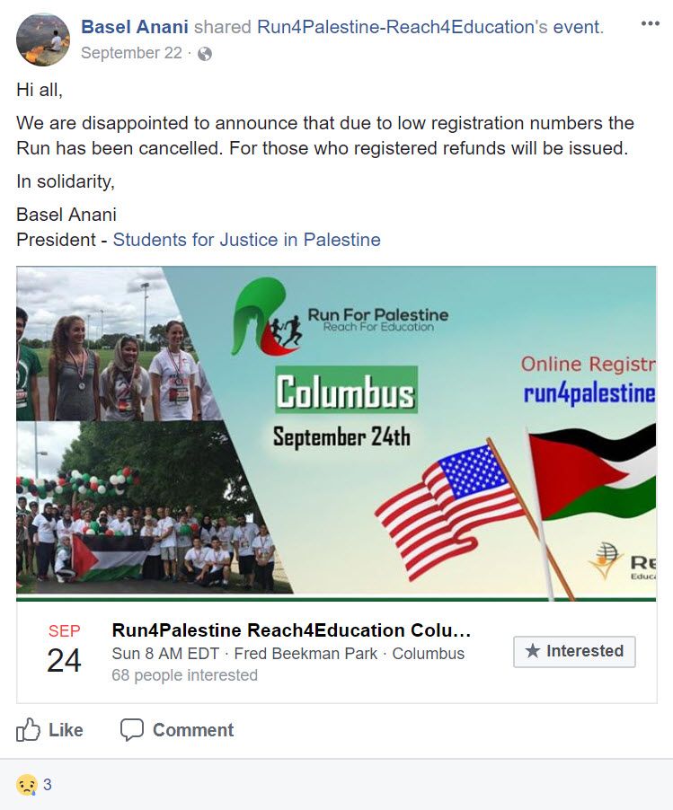 On November 6, 2015, SJP OSU posted an article on Facebook that accused Israel of harvesting Palestinians’ organs.The Right to Education Tour brings Birzeit University students to U.S. campuses, where they claim that Israel is obstructing the rights of Palestinians to higher education. This claim mischaracterizes the sweeps Israeli security forces have made to shut down terror cells operating on the Birzeit campus, including cells linked to Hamas.