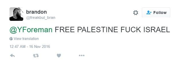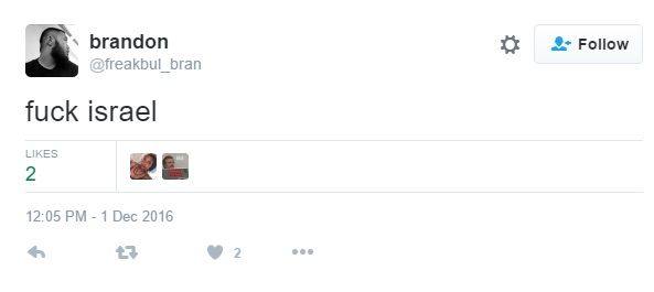 On December 1, 2016 Do, tweeted “F**k Israel”