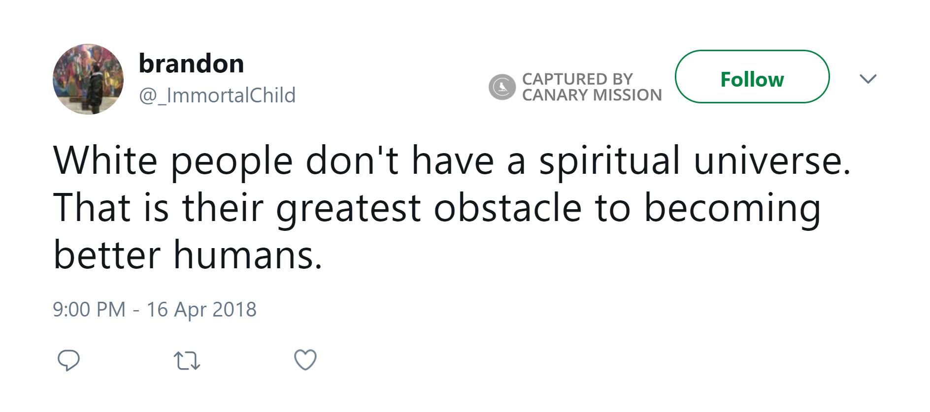 On April 16, 2018, Do tweeted: “White people don't have a spiritual universe. That is their greatest obstacle to becoming better humans.”On March 24, 2018, Do tweeted: “White people have the option of abandoning whiteness to join humanity.”