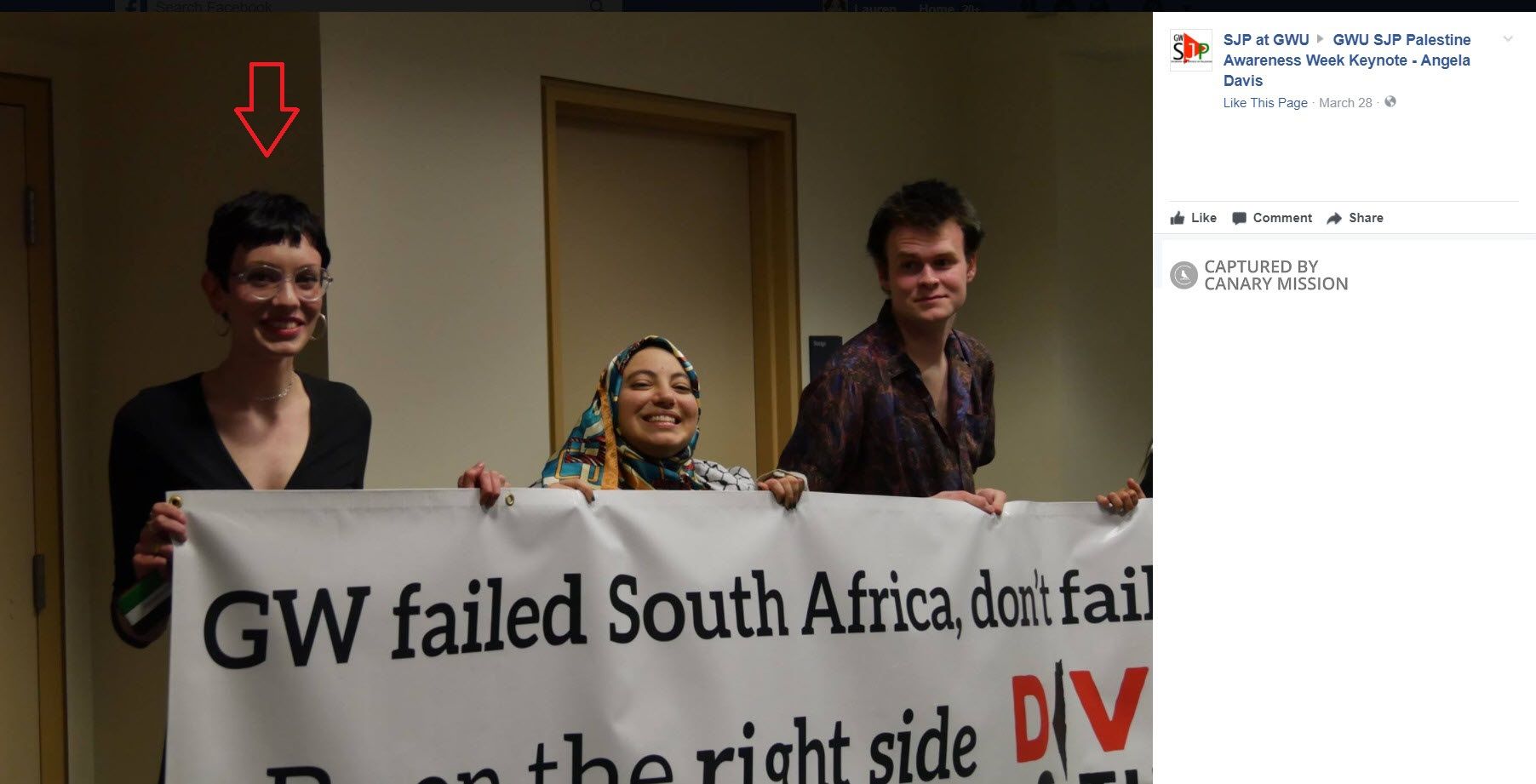 On March 27, 2017, SJP at GWU launched the Divest This Time campaign. The campaign’s name alluded to GWU’s declining to “divest from apartheid in South Africa” and called “for GWU not to make the same mistake with Palestine.”SJP at GWU - Palestine Awareness Week