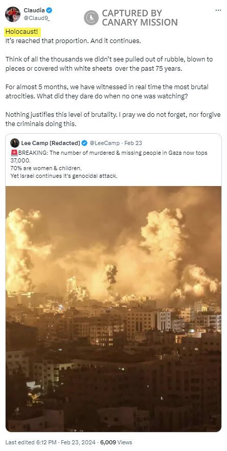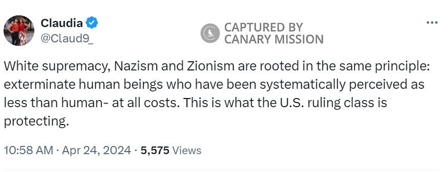 Claudia De la Cruz’s Promoting Incitement at the Pro-Hamas Encampment at Columbia University (Columbia), Glorifying Hamas Terrorism, Support for Terrorists & Equating Israel with Nazi Germany
