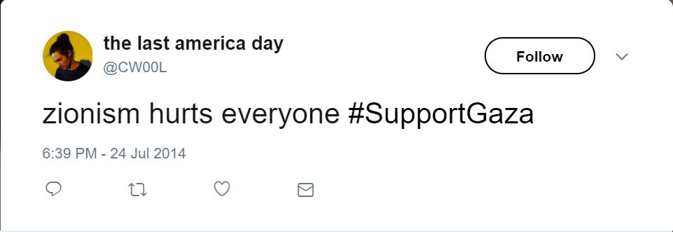 On July 25, 2014, Woolery tweeted: “zionism hurts everyone #SupportGaza.”