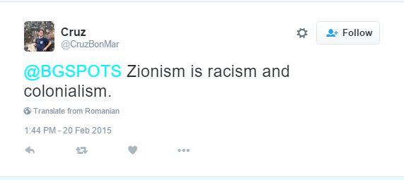 On February 20, 2015, Martinez tweeted: “ Zionism is racism and colonialism.”