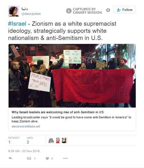 On November 26, 2015, Zituni tweeted that Khaled was a “Palestinian hero.”