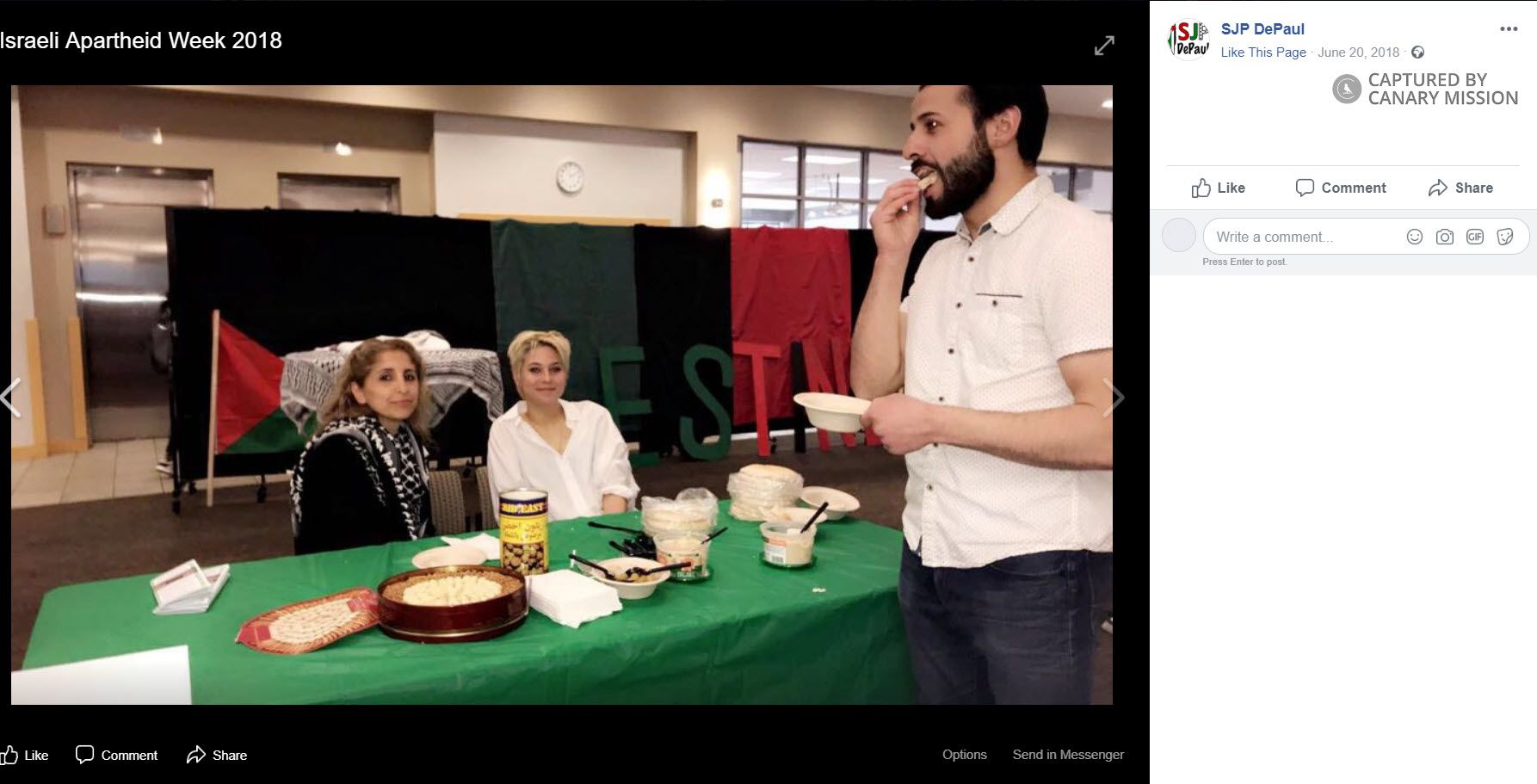 On June 20, 2018, SJP DePaul shared photos on Facebook featuring Odeh in photos of activists taken at Israeli Apartheid Week 2018.BDS Support