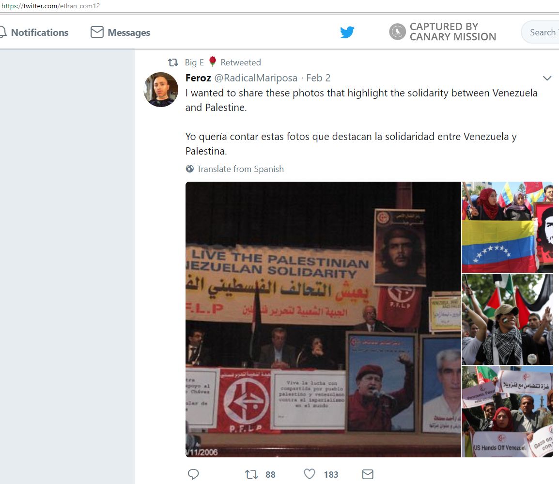 Comeriato retweeted a March 8, 2018 tweet addressed at the Israel Defense Forces (IDF), claiming: “You murder Palestinian women at checkpoints, and then plant knives beside their bodies. You sexually abuse Palestinian women in custody.”Comeriato retweeted a January 8, 2018 tweet referring to Israelis as “fascists” and accusing Israel of “murder” and “executing occupied Palestinians.”