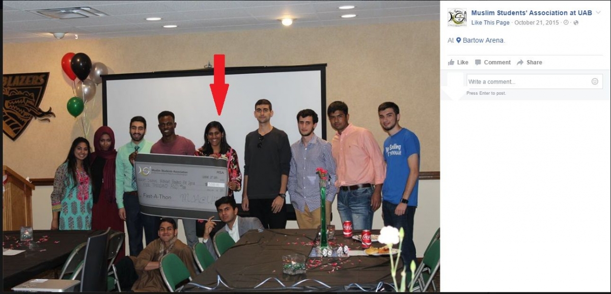 In January of 2016, Farah Jiwani became the events coordinator for Students for Justice in Palestine (SJP) at UAB (SJP UAB). On February 4, 2016, Ruaa AbuAishah — a fellow SJP member — shared a status confirming Jiwani’s attendance at the SJP South regional conference in January 2016.