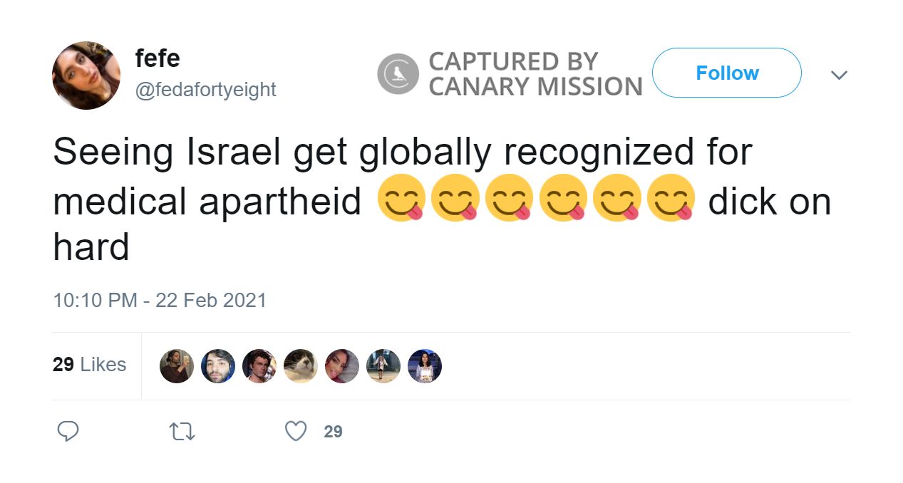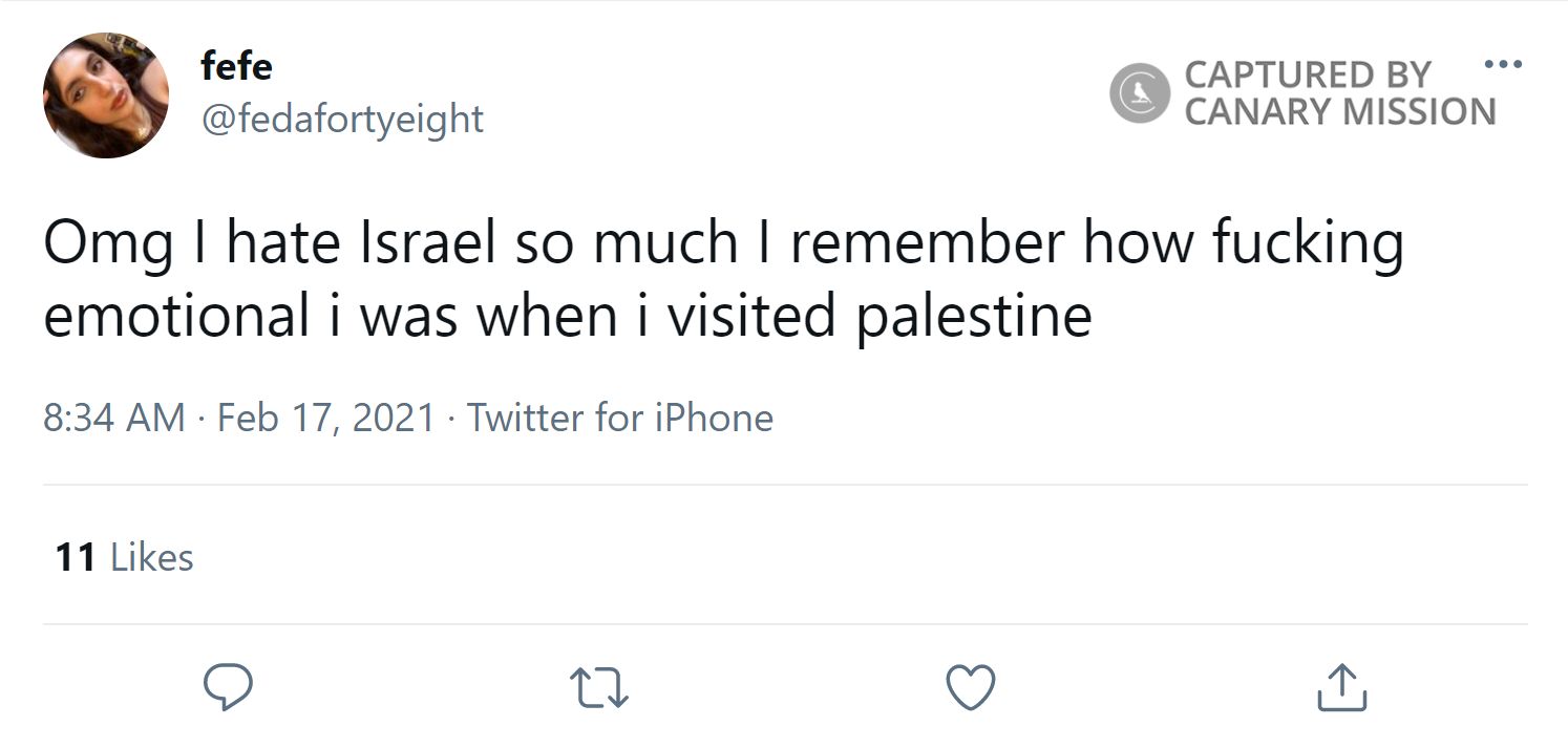 d**k on hard”On February 17, 2021, Taha tweeted: “Omg I hate Israel so much I remember how f**king emotional i was when i visited palestine.”