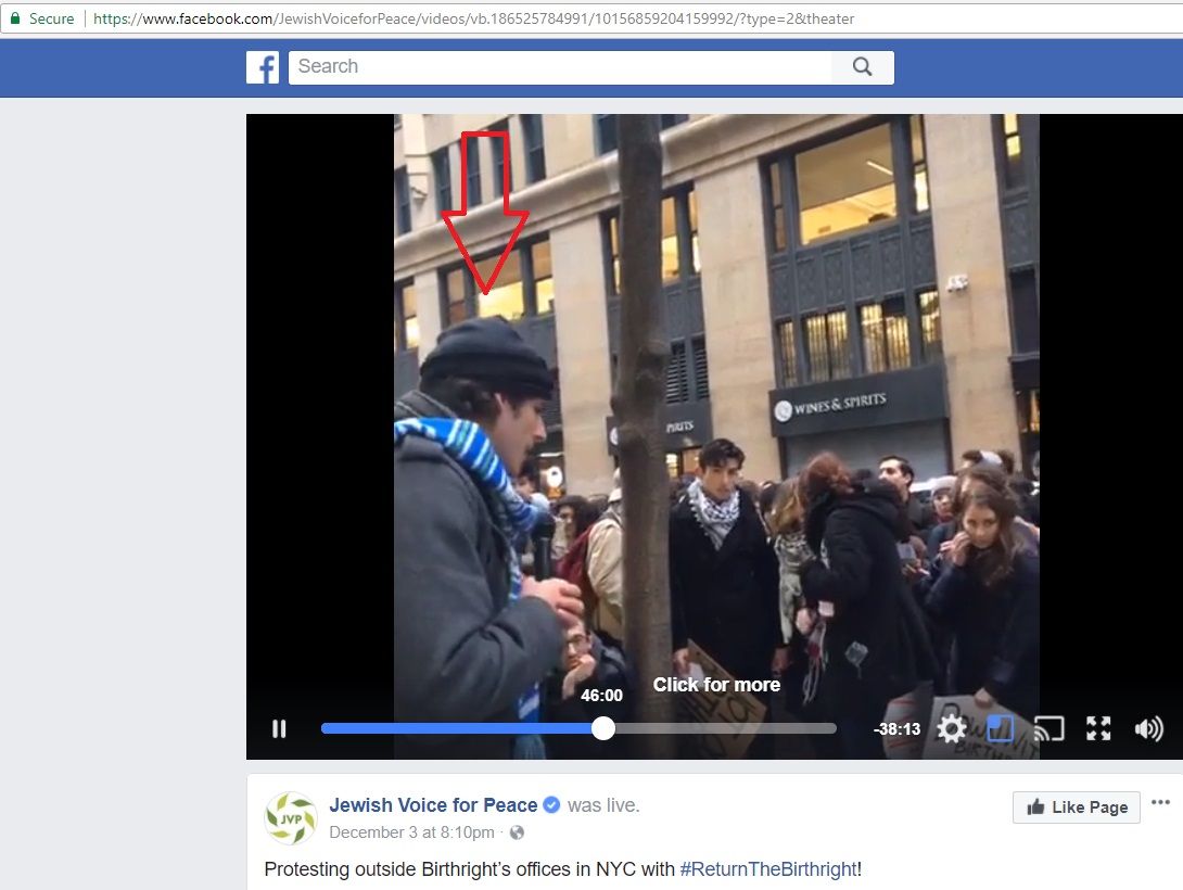 On December 3, 2017, Levine participated in a Return the Birthright protest outside the Taglit-Birthright offices in New York City, where JVP members assembled to chant anti-Birthright slogans.At the protest, Levine spoke [00:45:04] about how much he disliked Birthright when he participated on a trip in 2011. Levine explained that he accepted the free trip in order to “see the West Bank, after, and see the occupation firsthand.”