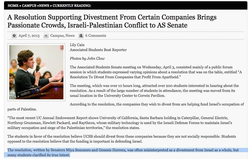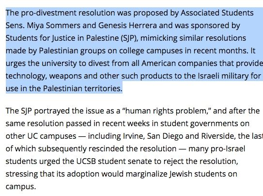 The pro-divestment bill that Herrera co-authored was also sponsored by Students for Justice in Palestine (SJP) UCSB.
