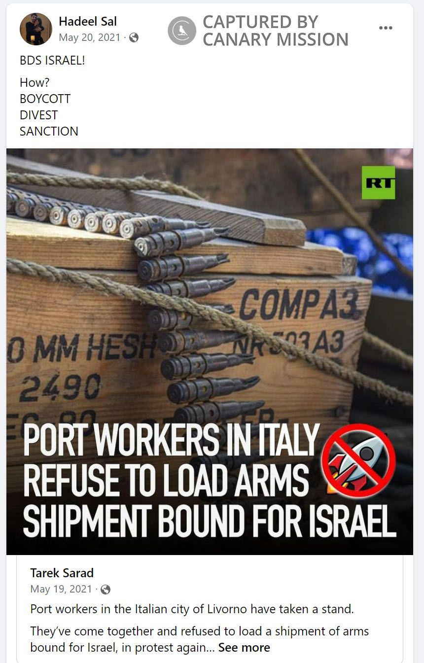 Hadeel Salameh [Hadeel Jawad Salameh] has called for Israel’s destruction, spread anti-Semitism, glorified terrorists and whitewashed the terror group Hamas. Salameh has also demonized Israel, endorsed anti-Israel agitators, engaged in anti-Israel activism and is a supporter of the Boycott, Divestment, Sanctions (BDS) movement.Salameh was listed as president of the University of Pittsburgh (Pitt) Students for Justice in Palestine (SJP) in their 2015 constitution.