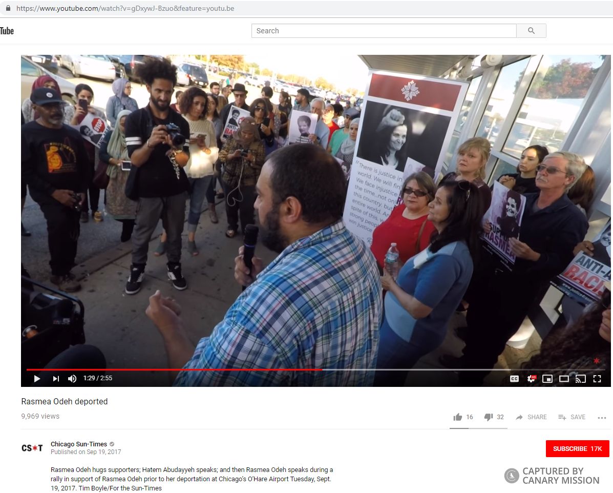 In 2017, Abudayyeh was reportedly the coordinator of terrorist Rasmea Odeh’s defense committee before she was deported for immigration fraud later that year.Odeh was a key military operative [00:02:08]with the Popular Front for the Liberation of Palestine (PFLP) terrorist organization. In 1969, she masterminded a PFLP supermarket bombing that killed two college students. She also attempted to bomb the British consulate in Jerusalem. Odeh later moved to the United States but was deported to Jordan in 2017 for immigration fraud.