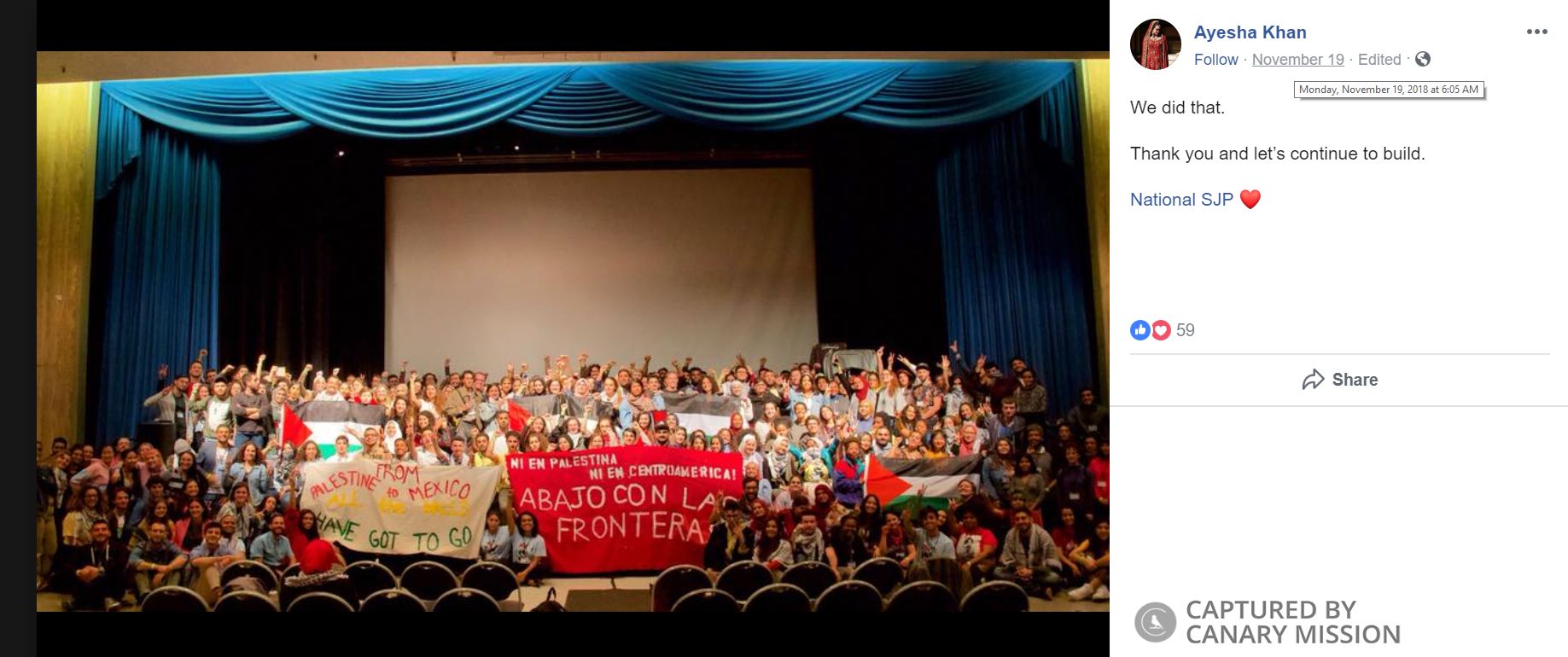 On November 18, 2018, the US Palestine Community Network (USPCN) posted on Facebook the 2018 National SJP keynote speech by Hatem Abudayyeh, USPCN’s co-founder.Abudayyeh has supported [00:08:45] convicted terrorists, praised terror organizations, called for Israel’s destruction and is an activist in theBoycott, Divestment, Sanctions (BDS) movement.