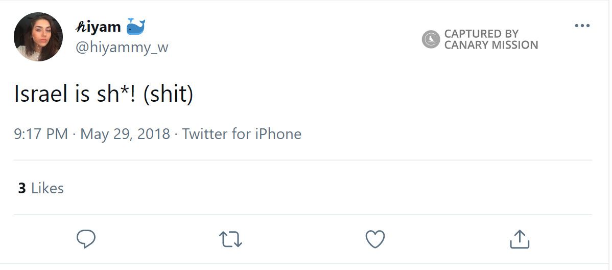 On May 29, 2018, Wazwaz tweeted: “Israel is sh*! (s**t).”