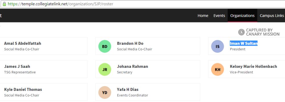 On September 3, 2014, Temple SJP claimed that Jalil “was only a visitor to the SJP table” and that he had no formal affiliation with the group. However, other reports and a November 2012 picture posted on the Temple SJP Twitter account contradict this claim.