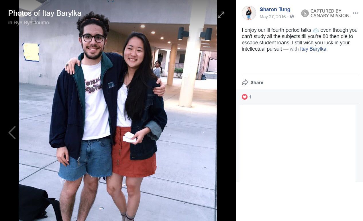 Itay Barylka was arrested while harassing Jewish students. He has publicly condemned as “unconstitutional” the Anti-Semitism Awareness Act, a bipartisan bill drafted in response to growing anti-Semitism in the United States.Barylka is anorganizer for Students for Justice in Palestine (SJP) and has attended multiple SJP-sponsored anti-Israel programs, including several “Israel Apartheid Week” events. Barylka has also promoted the #returnthebirthright initiative launched by the anti-Israel Jewish Voice for Peace (JVP) organization against the Birthright Jewish heritage tour.