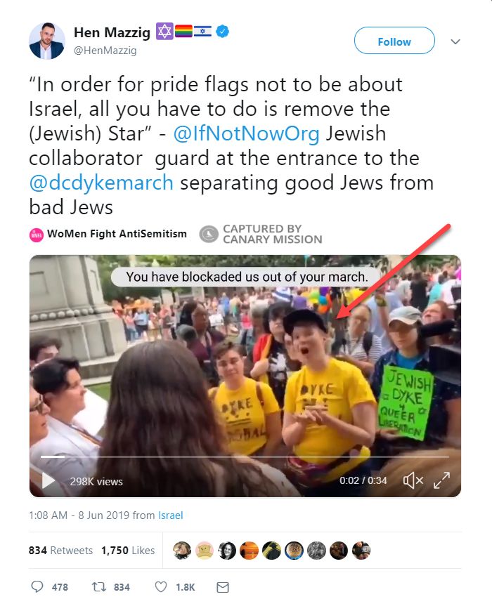 In June 2019, Raney was an INN leader “involved in organizing” the INN co-sponsored the June 7, 2019, D.C. Dyke March. Raney reportedly crafted the policy to ban the Jewish pride flag - a rainbow flag with the Star of David in the center.On June 6, 2019, Raney was interviewed for an INN article on Medium, where she referenced Dyke March organizers Yael Horowitz and Amanda Rae Gaines (a fellow INN member), who labeled the Jewish Pride flag as “lazy symbolism,” “a Zionist symbol” and “violent nationalism.”