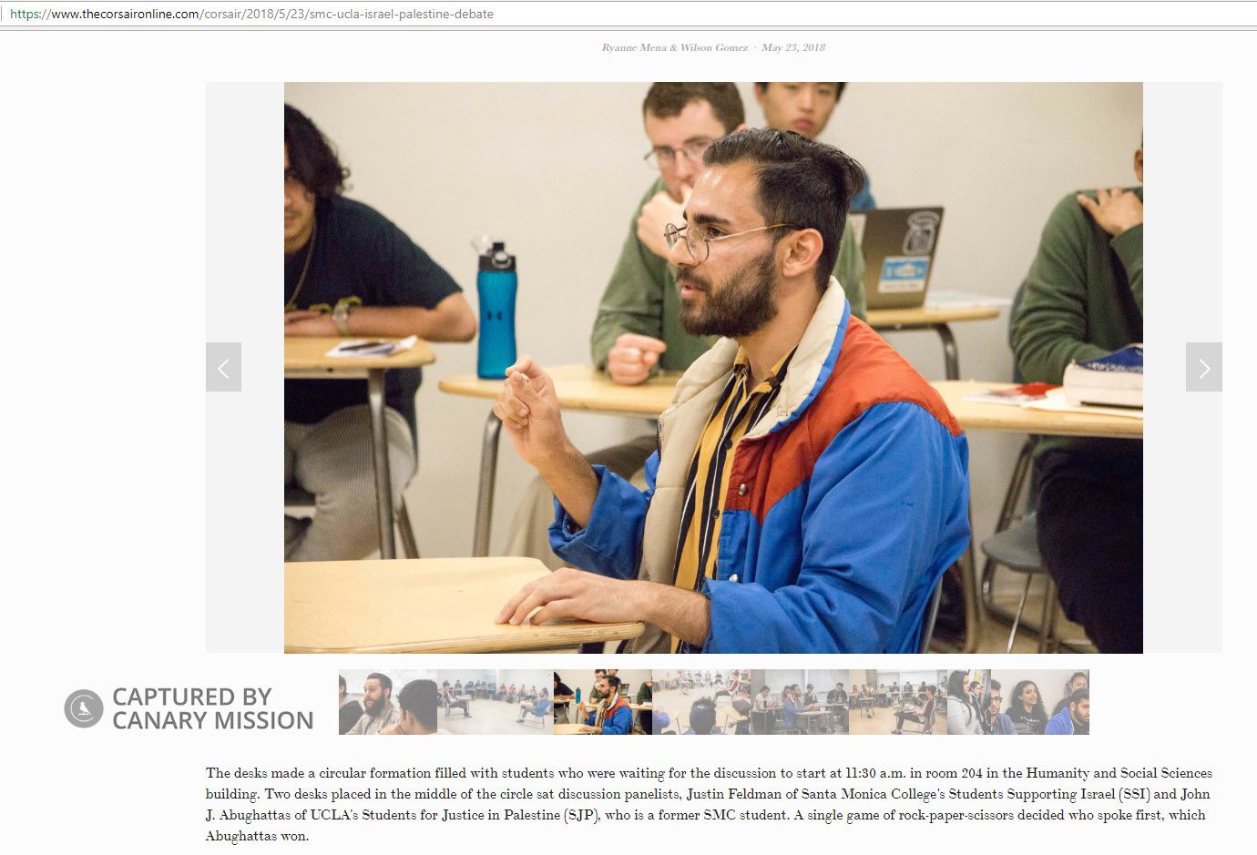 John Abughattas participated in the violent disruption of a pro-Israel event at the University of California, Los Angeles (UCLA) as an affiliate of Students for Justice in Palestine (SJP) at UCLA.As of December 2018, Abughattas used the alias “John Jeries” on Facebook.