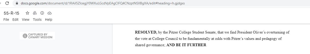 On March 31, 2019, the Pitzer College Student Senate, the student government,introduced two resolutions at an “Emergency Meeting” called to address the Haifa program boycott campaign.