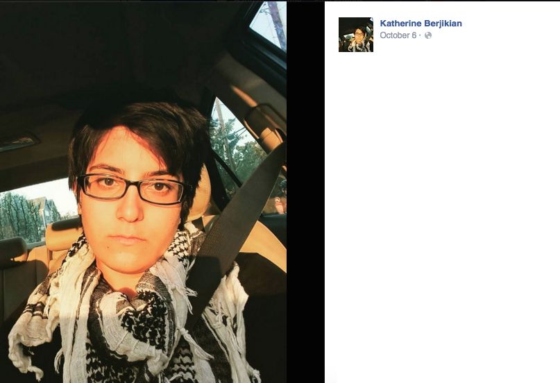 Katherine Berjikian called for “Intifada” while disrupting an LGBT event at the University of California Santa Cruz (UCSC), in 2015. Berjikian is a former executive board member of Students for Justice in Palestine (SJP) at UCSC (UCSC SJP), formerly known as the Committee for Justice in Palestine (CJP).Berjikian is also a supporter of the Boycott, Divestment, Sanctions (BDS) movement and has promoted anti-Israel professor Steven Salaita.