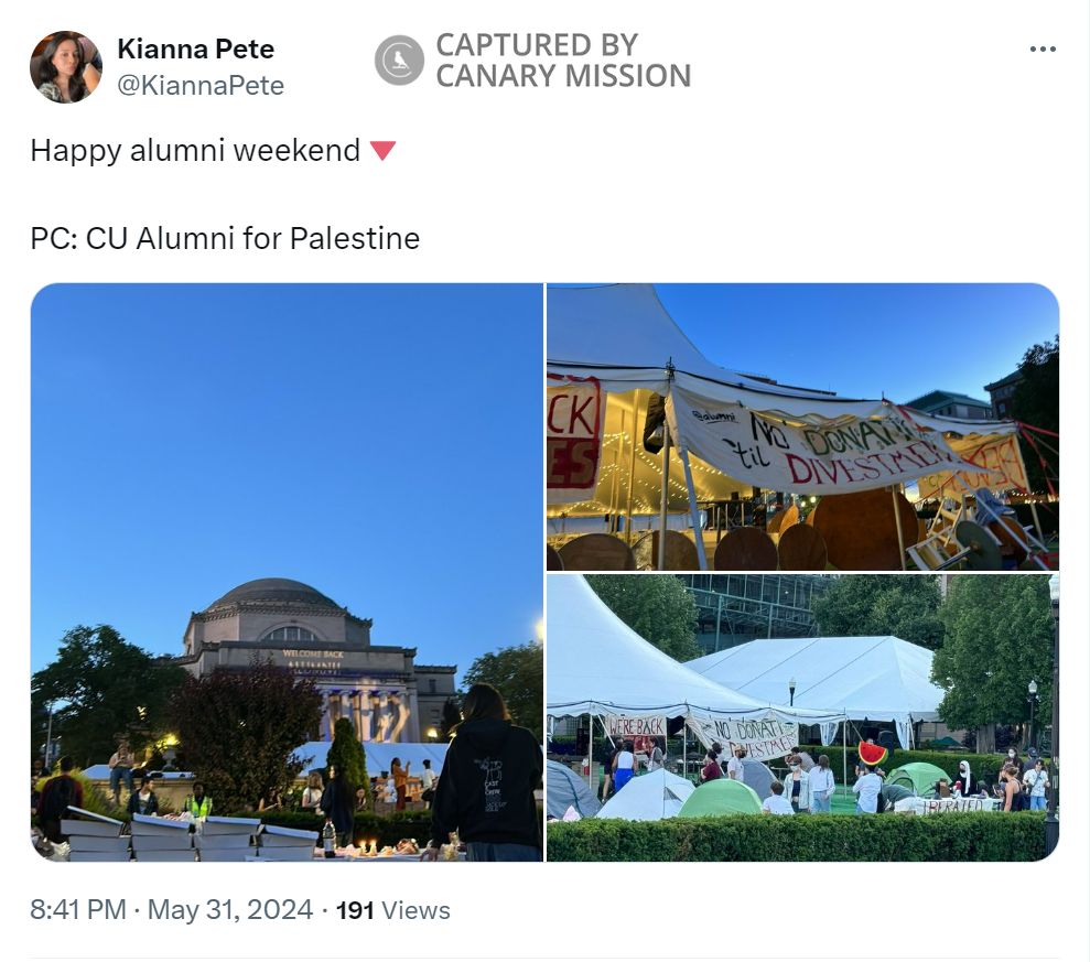 Kianna Pete’s Participation in the Pro-Hamas Encampment at Columbia University (Columbia)