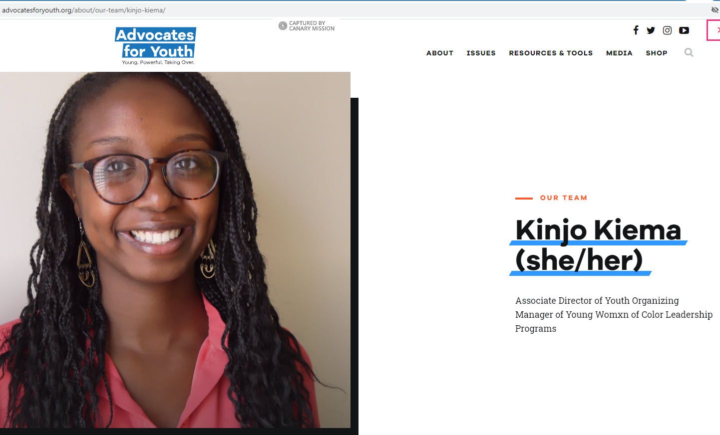 As of August 2021, Kiema’s LinkedIn page said she was the Associate Director of Youth Organizing at Advocates for Youth in Washington, D.C., since October 2019.