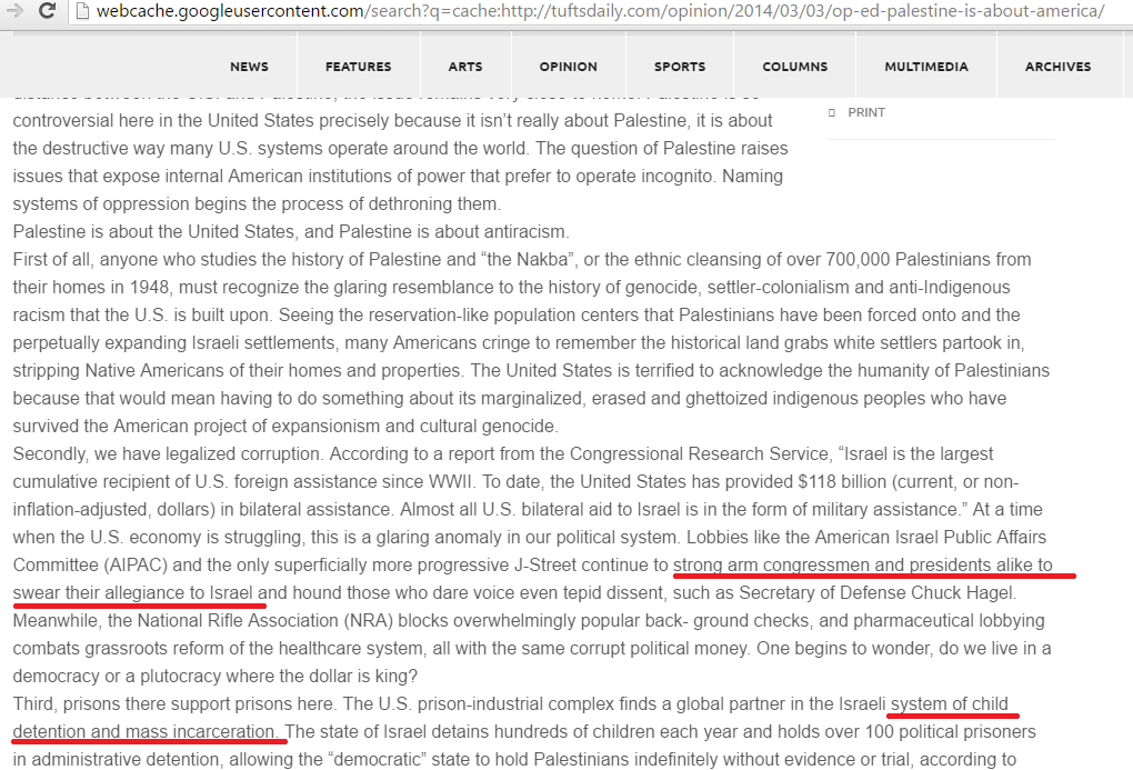 On March 9, 2016, Muskin-Pierret and Tufts SJP demonstrated against the “illegal Jewish occupation on Palestinian land,” according to the Tufts student newspaper. The demonstration was part of Tufts SJP’s Israeli Apartheid Week (IAW).