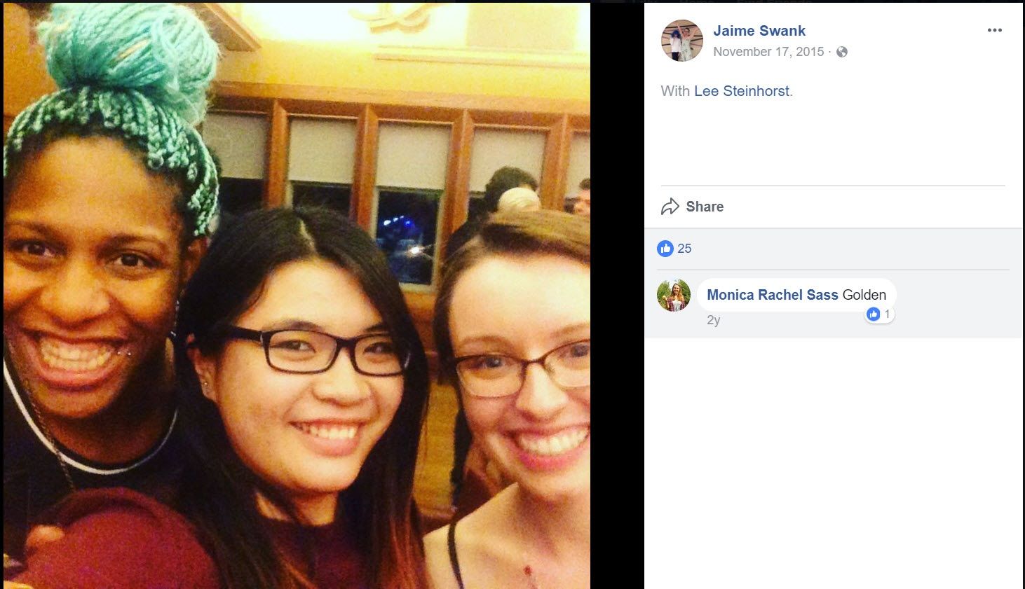 As of January 2018, Steinhorst’s Facebook also listed her as working in the “Tech Crew” at the Edison Theatre, St. Louis.