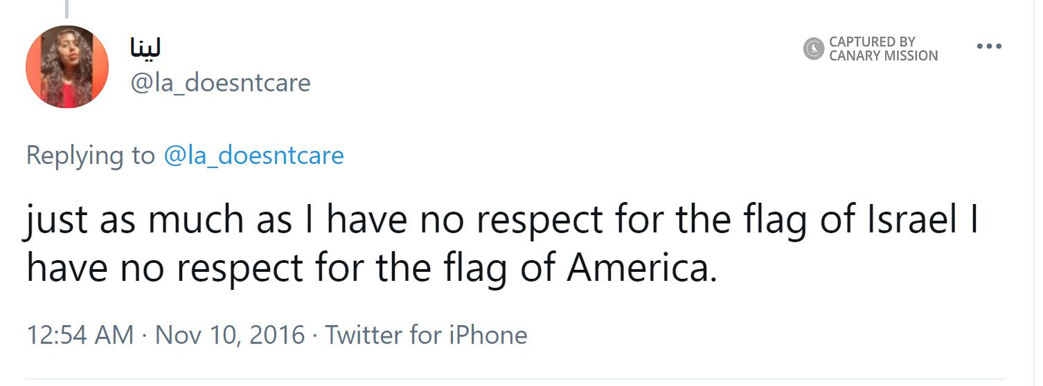 On November 10, 2016, Almasri tweeted: “just as much as I have no respect for the flag of Israel I have no respect for the flag of America.”