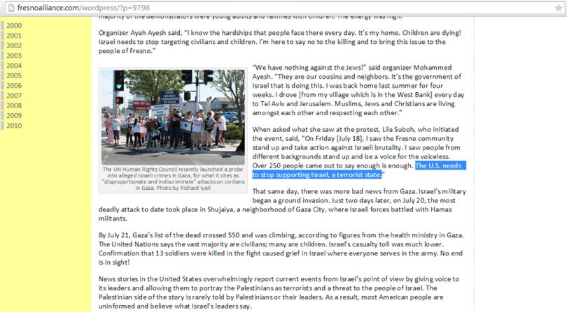 The first chapter of SJP was founded in 2001 at the University of California at Berkeley by Professor Hatem Bazian. Bazian has spread classic anti-Semitism, reportedly promoted religious anti-Semitism and defended the Hamas terror group. In 2004, Bazian called for “intifada” in America.