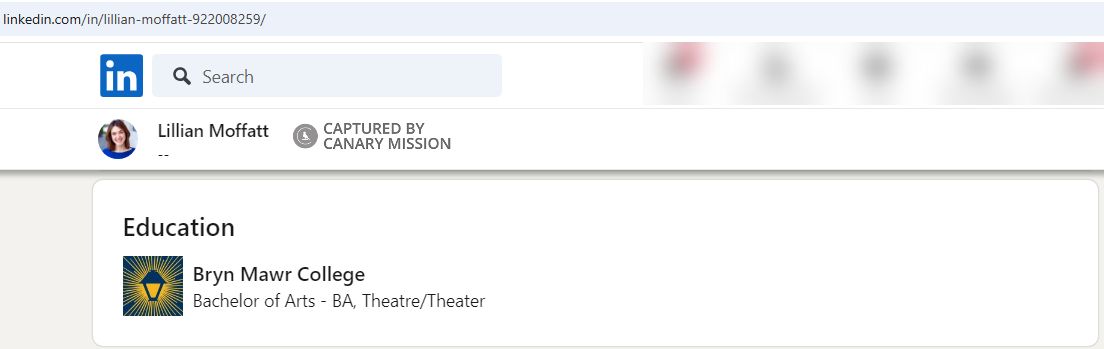In August 2024, Lillian Moffatt’s Instagram bio said she was an alumna of Bryn Mawr College (Bryn Mawr), located in Bryn Mawr, Pennsylvania.