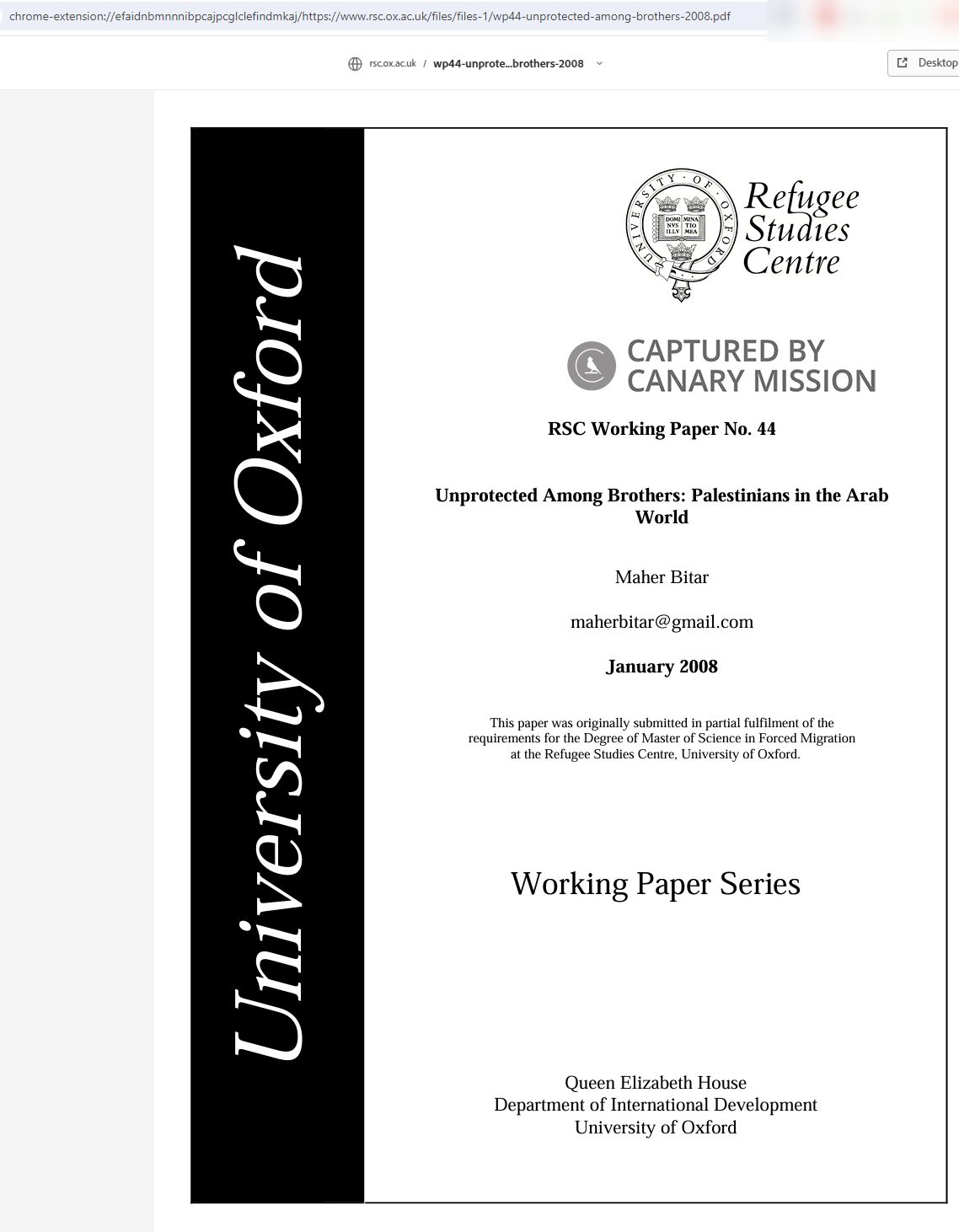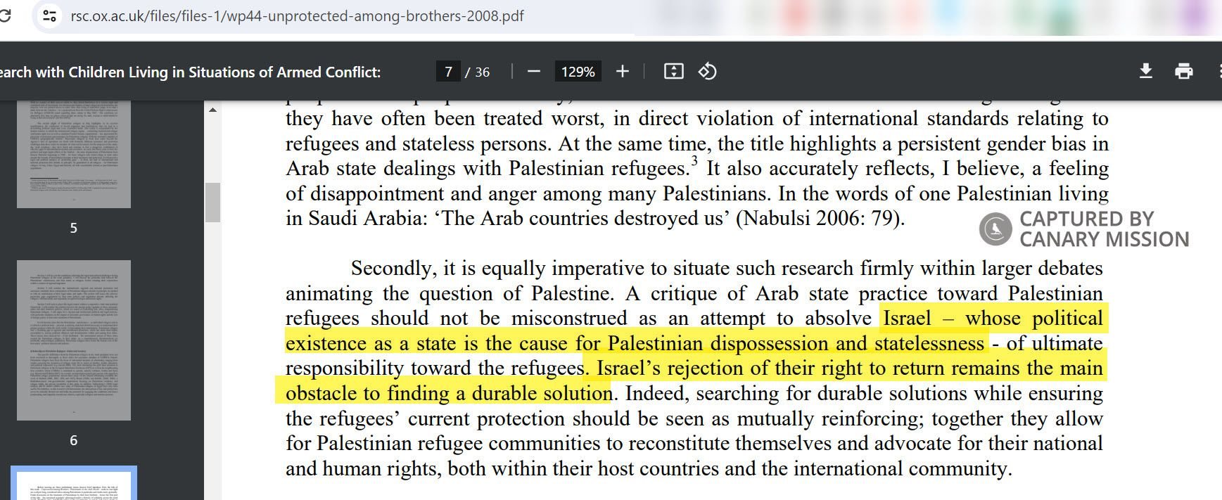 Bitar’s thesis claimed [p. 5] that Israel’s “existence as a state is the cause for Palestinian dispossession and statelessness - of ultimate responsibility toward the refugees. Israel’s rejection of their right to return remains the main obstacle to finding a durable solution.”