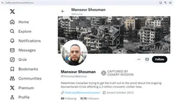 Mansour Shouman is a journalist who called for Israel’s destruction as a speaker at the pro-Hamas encampment at UofT in May 2024. He has also expressed support for Hamas terrorists, denied Hamas war crimes and spread anti-Semitism.