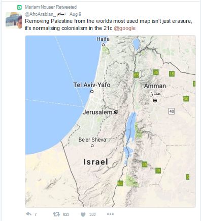 Nouser retweeted an August 9, 2016 tweet that read: “Removing Palestine from the worlds most used map isn’t just erasure, it’s normalising colonialism in the 21c @google.” The tweet included the image of a map of Israel.On November 29, 2016, while she was president of TMU MSA, Nouser attended the semi-annual general meeting (SAGM) of the TMU Student Union (TMSU). She tweeted: “Some people fully don't believe in the…erasure of Palestinians from their land. My blood hasn't boiled so much ever.”