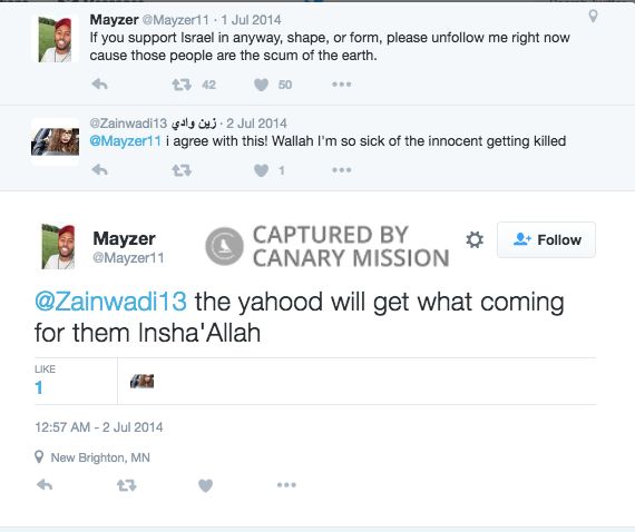 On July 2, 2014, Muhammad tweeted: “If you support Israel in anyway, shape, or form, please unfollow me right now cause those people are the scum of the earth.”Muhammad added later in the feed: “@Zainwadi13 the yahood [the Jews] will get what coming for them Insha'Allah [Please God].”
